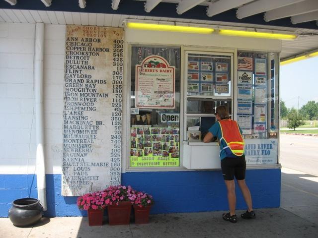 Today we made a great call. However, before doing so, our day started with another huge breakfast at Elmer's. Then we packed up our panniers, checked out of the Hiawatha Motel, and hit the road in the current heat wave with the wind at our backs. We only pedaled 17.5 miles up to Rapid River, Michigan, again using back roads and remaining off of the main highways.