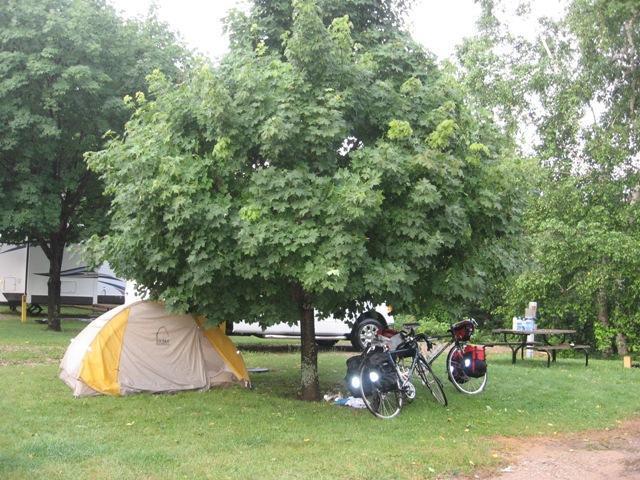 In Rapid River, we got a camp site at the Whiterfish Hill RV Park and Campground . . . and therein lies the great call. We couldn't go any further north into the Hiawatha National Forest because there is absolutely NO place for us to stay within 30 or 40 miles! So after sitting around the fire tonight, Kim and I plan to tackle a looooong day tomorrow and get to a campground near Munising, Michigan.