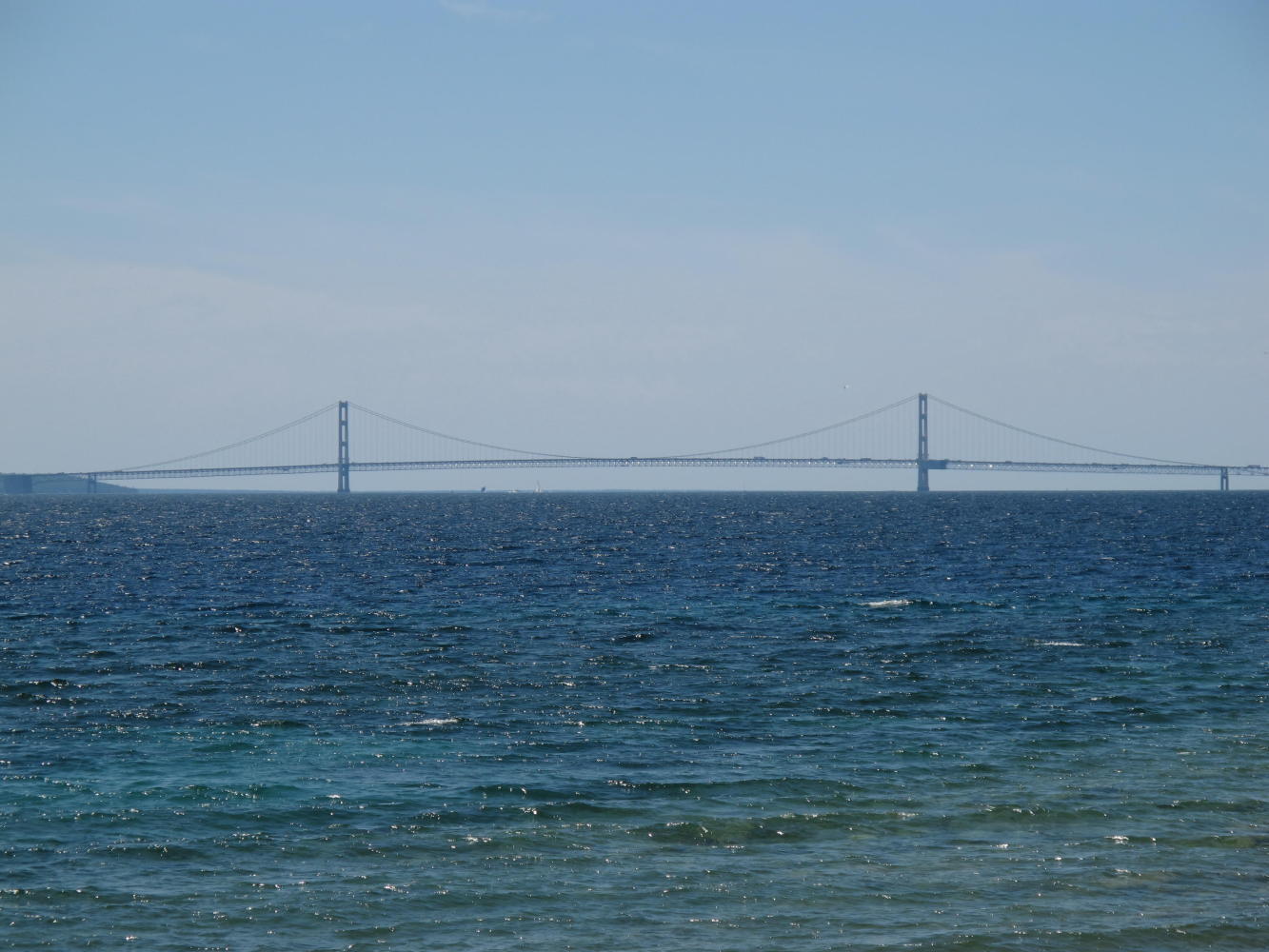 At the end of the day, we triumphed over an ugly I-75 and the five mile bridge over the Mackinaw Straits by catching the 7:00 Shepler's ferry back to Mackinaw City, which is on the south side of the straits across from Saint Ignace. There, we rewarded ourselves with a Mom-n-Pop motel room because there is an 80% chance of rain tomorrow. After settling in, we walked down to Cunningham's Family Restaurant and both ate the Whitefish dinner special.