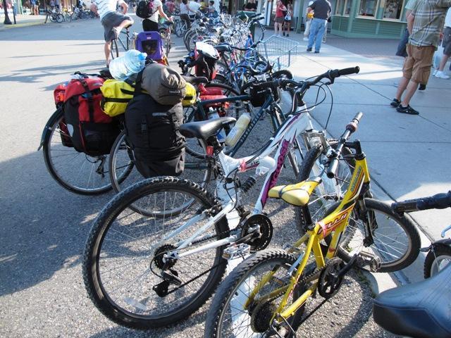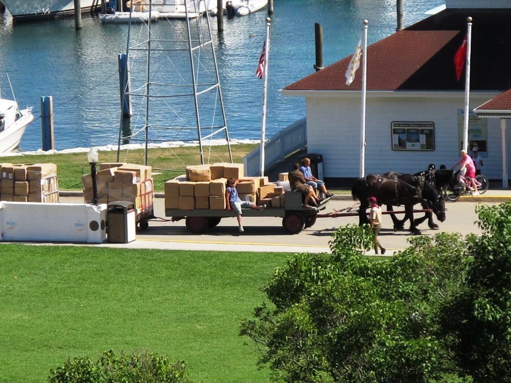 Then we pedaled the short distance down to the city of Saint Ignace and caught the 12:30 Shepler's ferry out to Mackinaw Island. We ate a healthy lunch at Millie's Cafe and then played tourist, visiting the downtown streets, the Butterfly House, and Fort Mackinac.