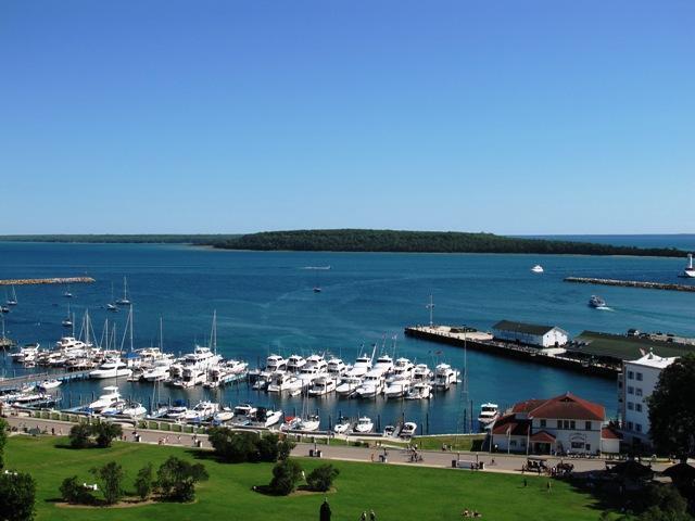 Today's tour around Mackinac Island was a lot of fun. The fort was especially interesting, as was the butterfly exhibit. No cars are allowed on the island so, needless to say, bicycles are in great abundance. The other wheeled mode of transportation is the horse-drawn carriage. The ferry boat rides to the island and back were great....always love being on the water.