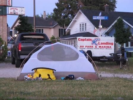 Then we continued into Algoma, where we stumbled upon the last - repeat LAST - available camp site at Captain K's Landing in downtown Algoma. After the best showers of the trip so far, Kim and I walked over to a place called Cool Harbor, where I had a salad with wine, and Kim only had a glass of wine. We returned to Captain D's to do a load of laundry while paying bills and sending postcards.