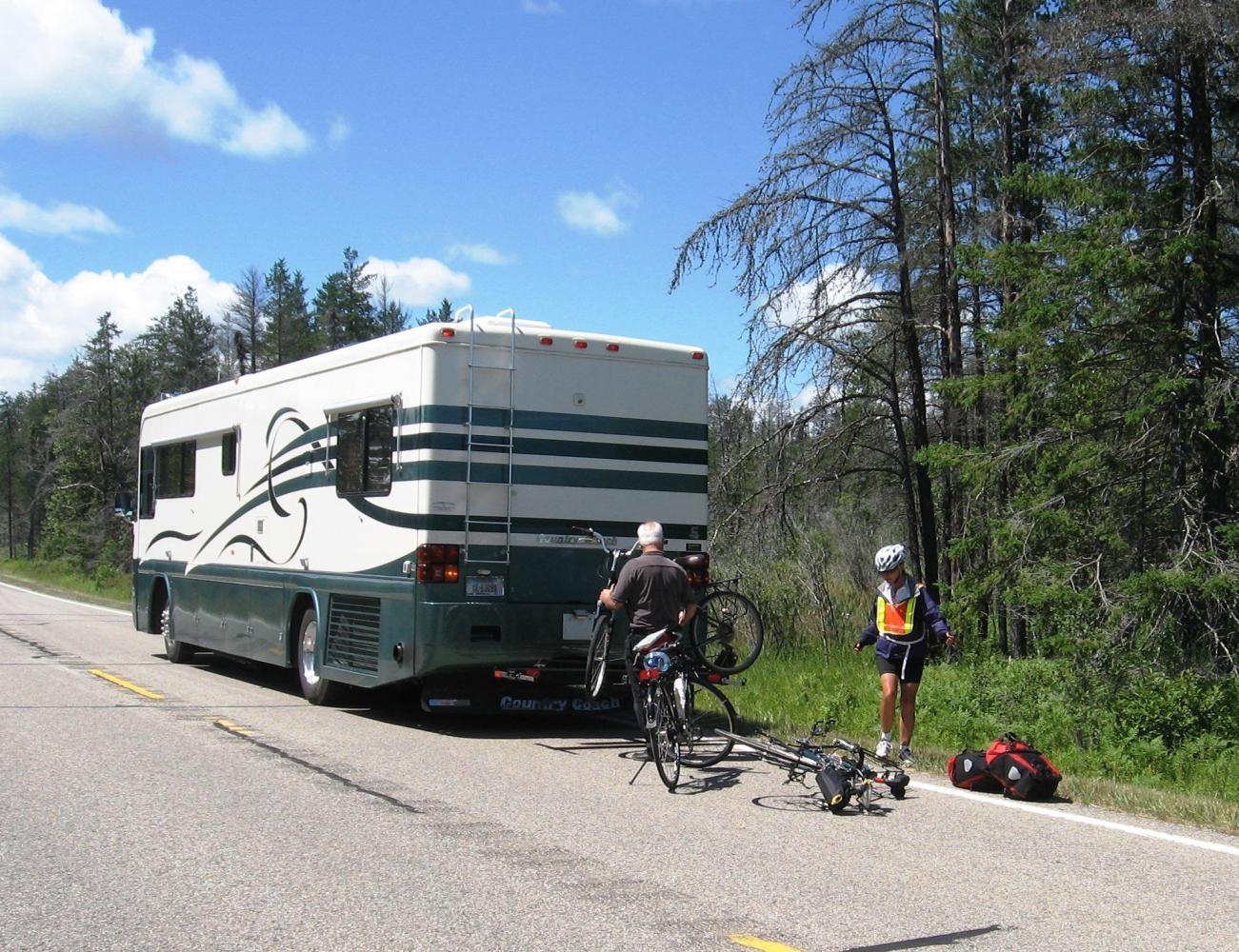 Kim and I eventually flagged down Dan in a gigantic RV, and he took us back to the S & J bike shop in Newberry. There are still good people in this country.