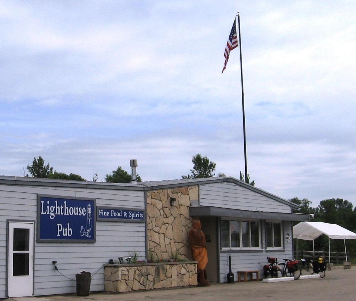This morning, Kim and I departed the mysterious world of the "RV People" staying in Kleinke Park. We tried to find a backroads route for the day, but a "Pavement Ends" sign forced us to abort and return to Michigan State Route 35 North. So we pedaled most of the day in single file on a narrow shoulder, listening to the bump-bump-bump-bump of motorists crossing left over the centerline rumble strips to give us some room.