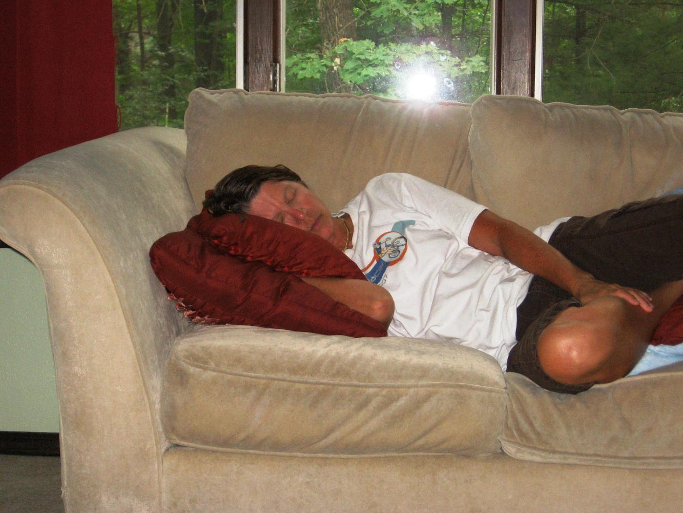 So I laid down on his living room floor and took a nap. Kim showered and took a nap on Darren's couch. Is this a great program or what???