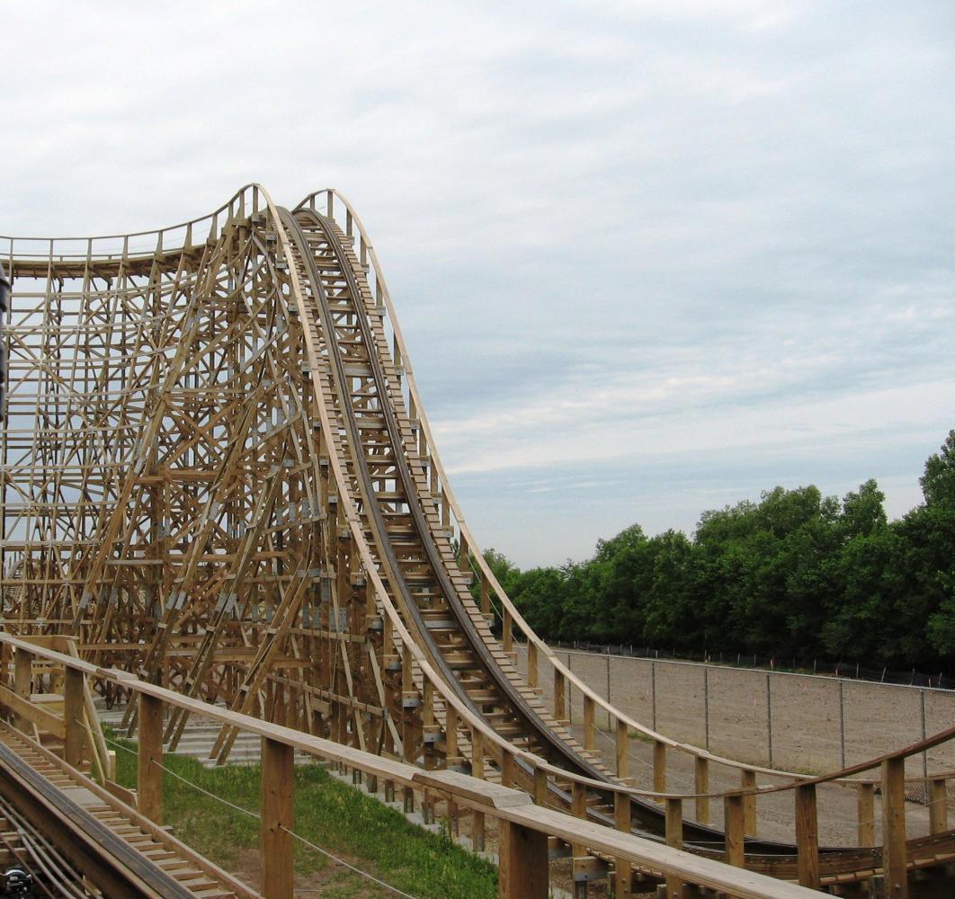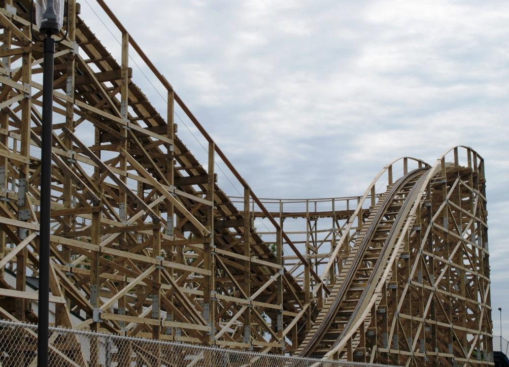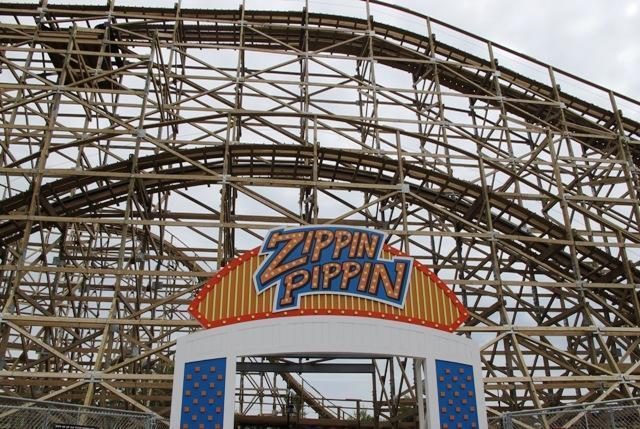 The morning highlight, as John mentions below, was riding on an old wooden roller coaster, the Zippin Pippin. It just opened in Green Bay on 5/21/11, having been dismantled and transported from Libertyland in Memphis, TN.